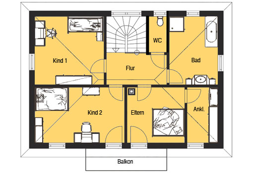 Eltern Ankleide Kind 1 Kind 2 Bad Flur WC Balkon |