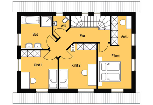 Eltern Ankleide Kind 1 Kind 2 Bad Flur WC |